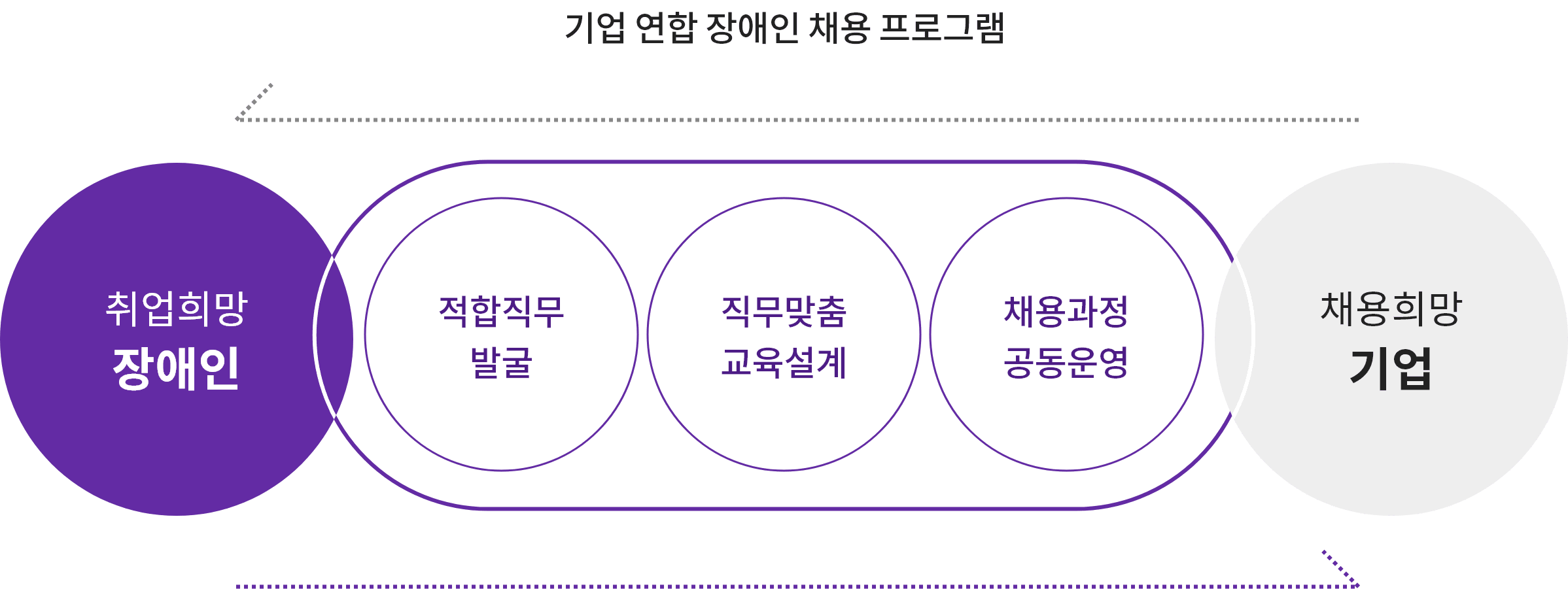 장애인 적합 직무를 개발해 훈련 프로그램을 제공하고, 다양한 기업에 채용을 연계합니다.